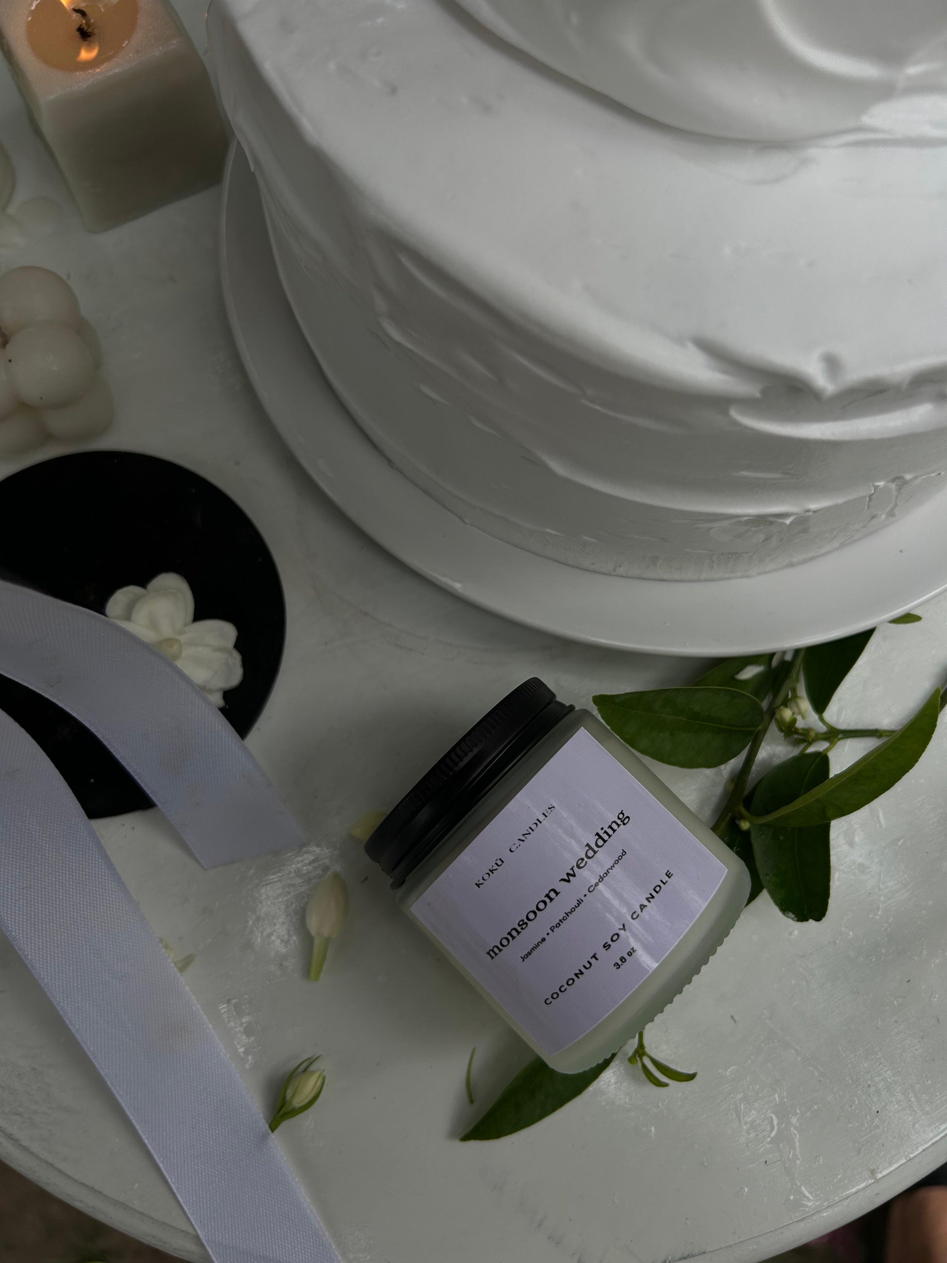 - Quality Coconut Soy Wax: Crafted from premium coconut soy wax, our Monsoon Wedding Scented Candle ensures a clean and long-lasting burn.